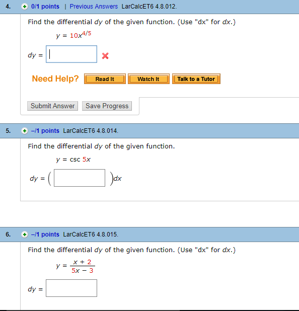 The function is. -1007 Points DETAILS LARCALC1139022. So the differential of why its just the derivative of the.