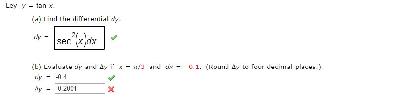 Solved Ley Y Tan X A Find The Differential Dy Dy Chegg Com